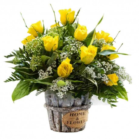 Hand delivered and complete in a vase. Yellow roses and foliage. (The container may vary. )